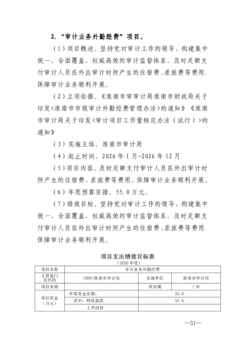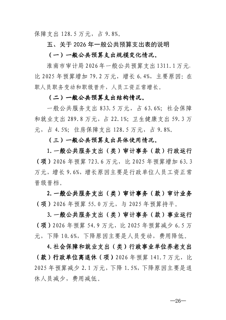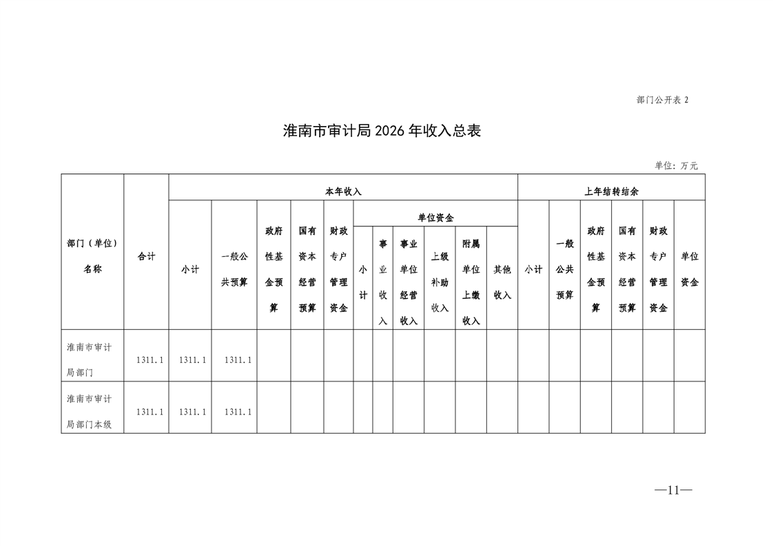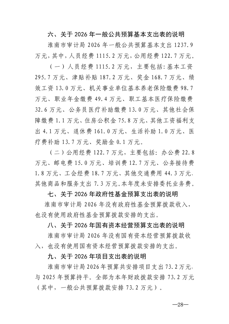 淮南市审计局2026年部门预算