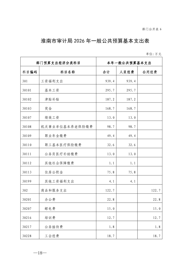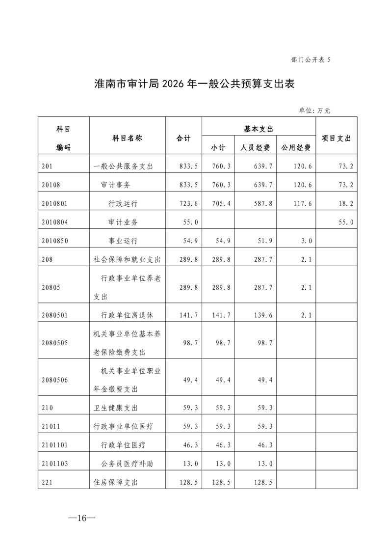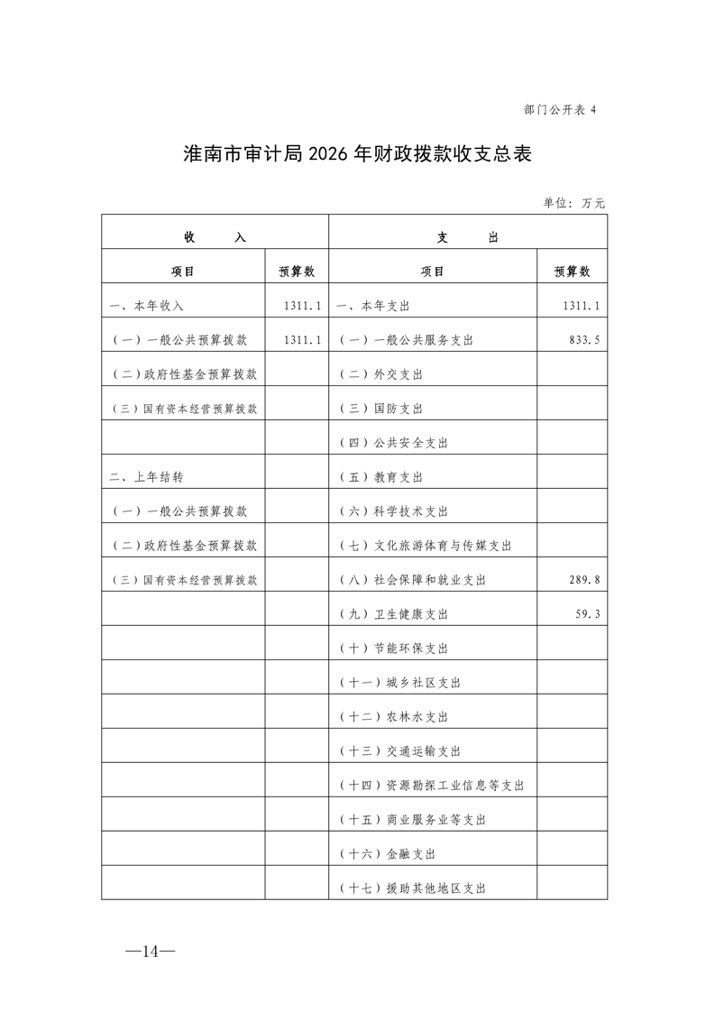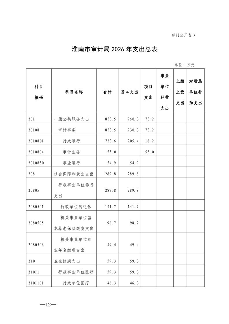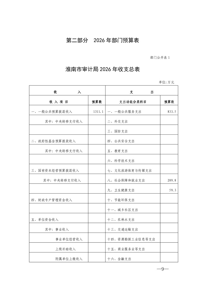 淮南市审计局2026年部门预算