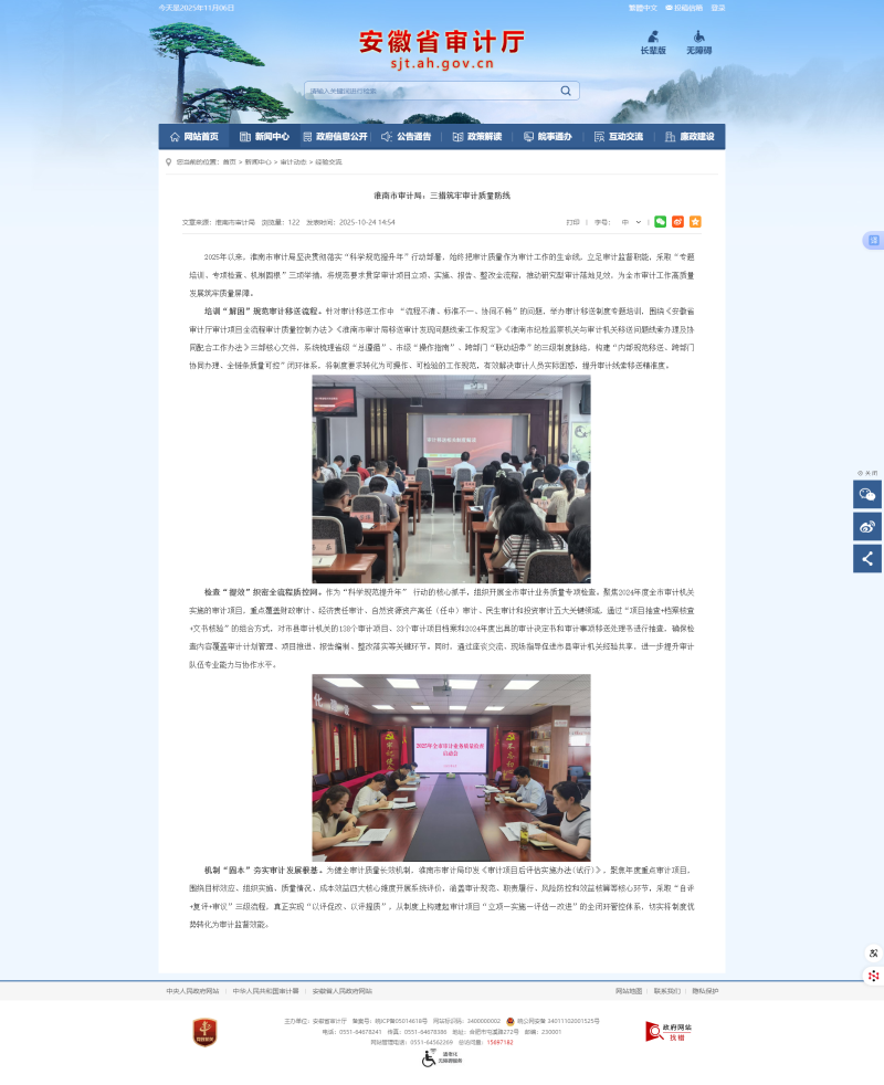 省厅网站10月24日发布:淮南市审计局:三措筑牢审计质量防线