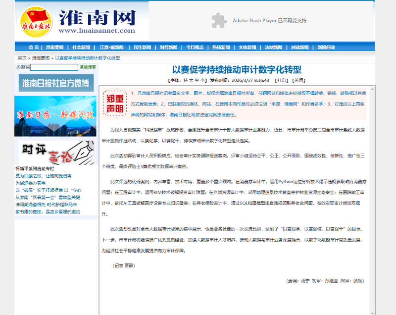 淮南日报3月27日刊发:以赛促学持续推动审计数字化转型